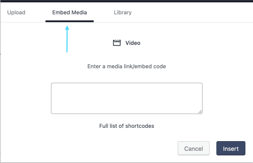 Next, click on Embed Media, and you’ll see a field where you can enter a Media link/Embed code: