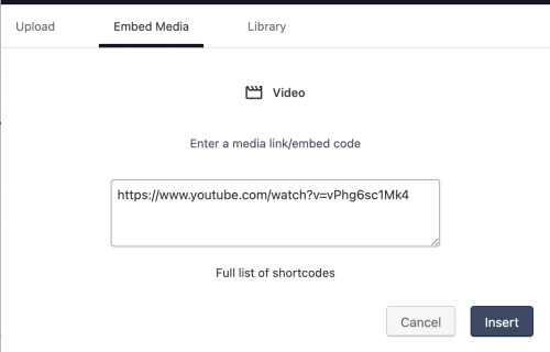 Note that this URL is converted to a shortcode on saving, so if you go to edit it again, it will look like one of the shortcodes below.