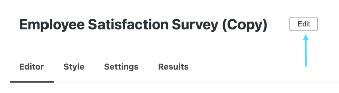 Once you click duplicate, you’ll be taken to the Editor page to give your new copy a name. Click Edit to change the name (in this case, we want to name our duplicate Spring Employee Satisfaction Survey).