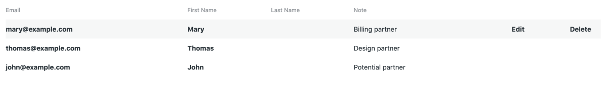 You can click on the Edit button on the contact’s row to change their information, or the Delete button to remove them from the list.
