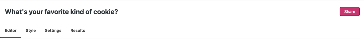 Click on the “Share” button at the top right of the screen when editing a poll.