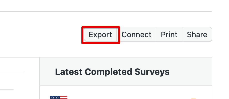 Keep in mind that Surveys and Projects have both an Overview summary report and specific sections. Choose the data you want to export by heading to one of the report sections: