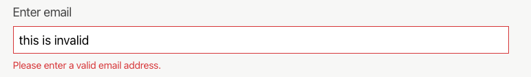 If the user provides an invalid email address, an error will appear under the field upon submitting the form and they will need to correct the error before being able to submit.