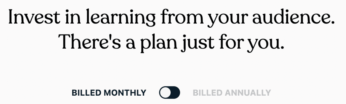 If so, our free plan allows you to collect up to 2,500 Signals for free. A Signal is a single response that you collected via a question in a survey, quiz, poll, or rating. When you reach the limit of 2,500 Signals, you still have full access to the first 2,500 Signals you collected and all your polls, surveys, quizzes, or ratings will continue to work. Also, all incoming responses will be collected as before.