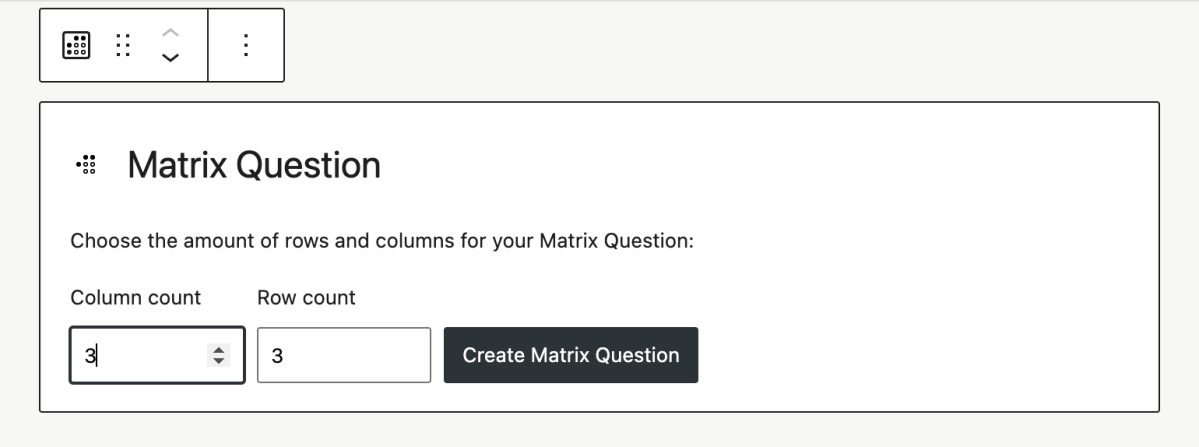 Click the Create Matrix Question button and a new blank Matrix will appear in the editor.