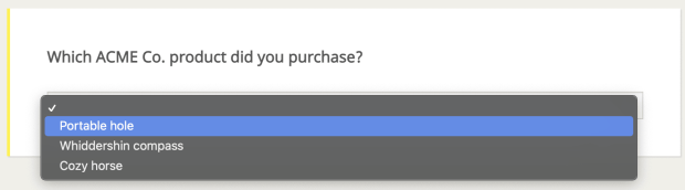 This allows one answer to be selected, with the answers shown in a dropdown list.