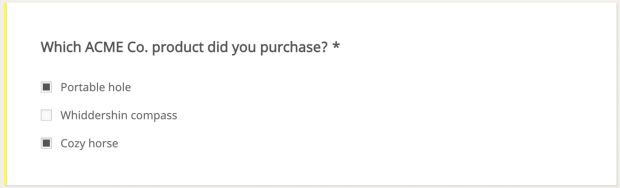 This allows any number of answers to be selected, with answers shown in a list. Participants can then hold down the CMD or CTRL key in Mac or Windows, respectively, to select multiple options.