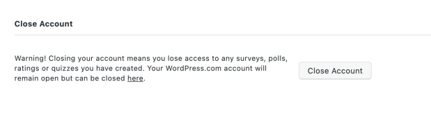 Please note that this will NOT close your WordPress.com account as well. If you want to close your WordPress.com account, please follow these directions.