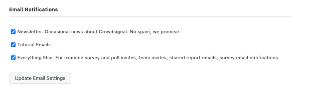 These options allow you to control which emails you receive from Crowdsignal.
