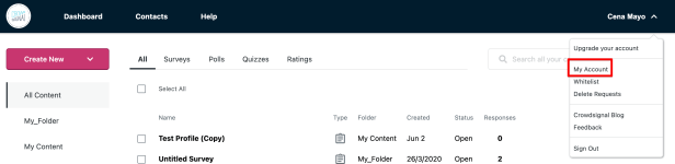 In other words, your Crowdsignal account is a WordPress.com account. The email set within the Crowdsignal My account page can be used specifically for all internal functions of Crowdsignal. This distinction allows you to have a really generic email address set up (such as webmaster@website.com) but use your own WordPress.com credentials to login.