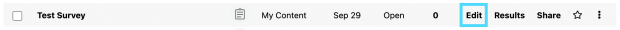 Once you’ve created your survey, hover over the title of it in your dashboard and click on Edit: