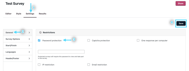 You’ll need to be sure to share the password with your participants so that they can access the survey.