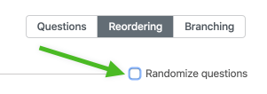 Once you’ve got your questions set up, you can click on the Reordering section, then check the checkbox next to Randomize questions: