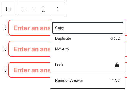 You can also manipulate an answer by clicking the Options icon visible when inside an answer field.