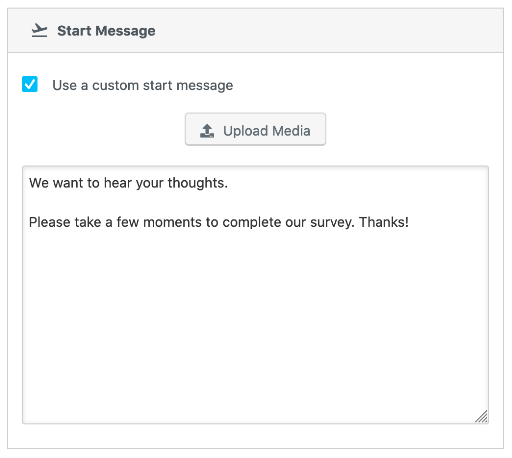 If you like, you can create custom start message that your survey participants will see before they start the survey: