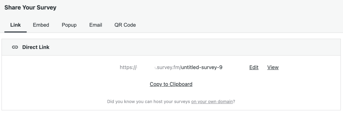 Note that editing the permalink here does not change the survey title. You can change the title in the Editor section.