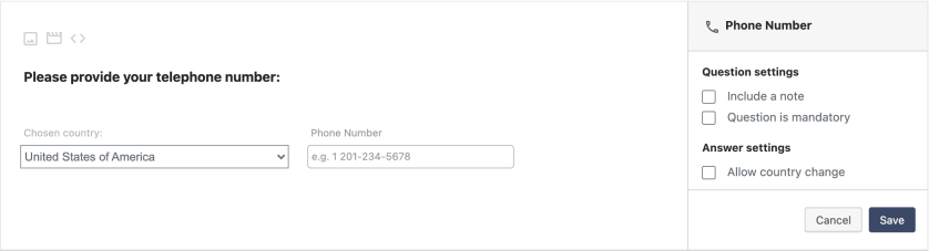The telephone number question type allows you to capture telephone numbers from your participants.