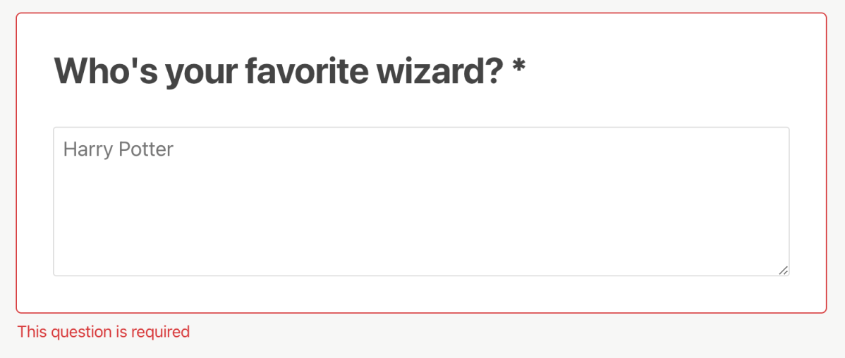 If you’d like to require your audience to fill out the text question before submitting the form, you can toggle the ‘required’ setting inside the block sidebar.