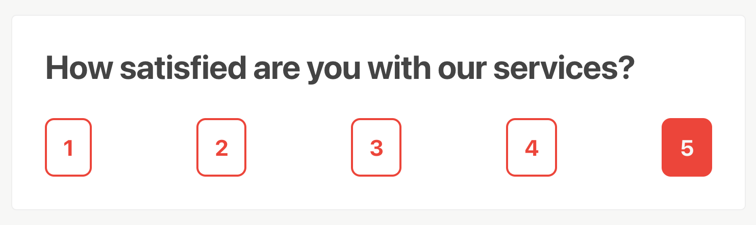 Enter your question and the rating block is ready to go. By default we provide a 1 to 5 scale, but those can be whatever you like.