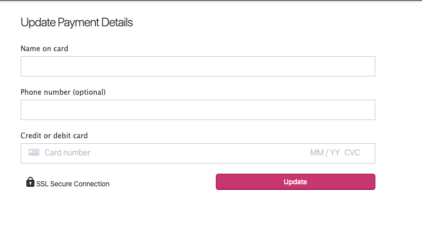 Your payment details can be updated by looking at the sidebar of your account page for the Update Payment Details button.