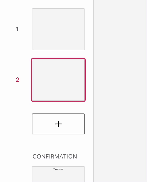 The pages menu allows you to create and manage multi-page projects. The area consists of at least one page, a button to add additional pages and a mandatory confirmation page.