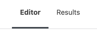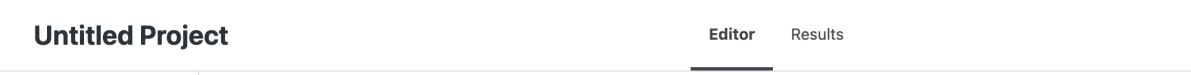 Use the Editor and Results tab to switch between the editor view and the results page for your project. If you are working with a draft project, the draft must be saved to see the results page.